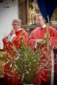 - Heiligkreuz: Sa, 28.03., 19:00 Uhr, Segnung der Palmzweige auf dem Kirchplatz – Palmprozession – Familiengottesdienst (Pfarrer i. R. Lorenz Glatz)